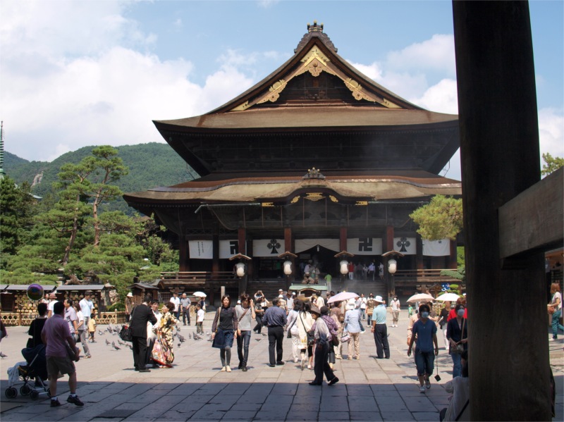 「芦ノ尻の道祖神」のあと、このまま尾根伝いの県道12号を走り、長野市街へ入っていきました。次は「善光寺」です。ここは何回来てもいつもたくさんの観光客で賑わっていますね。いろいろと欲張ってお願い事をしてきましたよ。