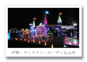 空が薄暗くなってきた夕方5時ころに諏訪を出発。会場に着いたときはすでに真っ暗です。けっこうの人出になっていて、臨時駐車場はもう半分以上埋まっていました。車から下りて歩き出すとすごいイルミネーションの数です。地元の有志が手作りしたものですからプロが作った大掛かりなものではありませんが、ひとつひとつがなかなか雰囲気があってとってもいい感じです。企業やお店、個人のほか、小学校の学級単位での出品もありました。みんないっしょうけんめい作った作品ばかりでした。