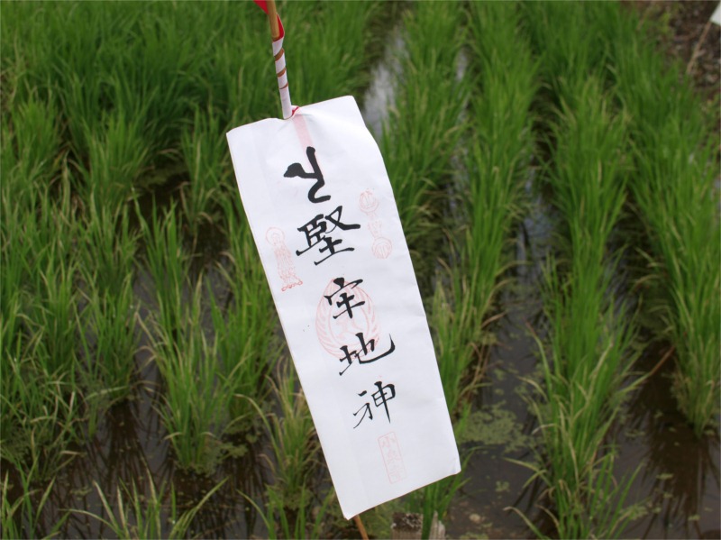 「稲虫祭り」は毎年この時期にこどもたちが練り歩くお祭りで、稲につく悪い虫(イナゴなど)を追い払い豊作を祈願します。太鼓や鐘を鳴らし「稲虫お~くりな~(送りな)」と大きな声を出しながら、田んぼに虫の絵を描いた紙の小旗をさしていく、この地方の伝統行事です。お寺の「御札(おふだ)」もあって、子供たちの手書きの絵といっしょに田んぼに立てられます。