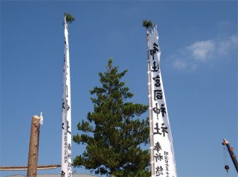 例年、9月の第1日曜日にはこのお社の秋祭りですが、今年は諏訪大社と同様に御柱が建てられました。