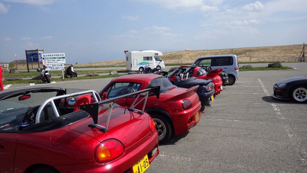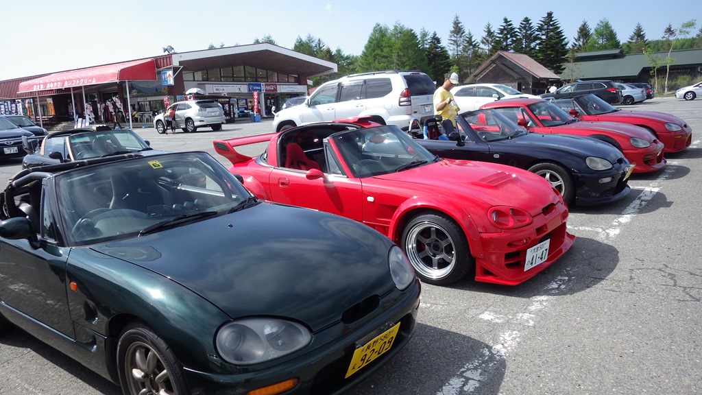 まず国道152号線で白樺湖に向かい、湖畔を一周したあと、ビーナスラインを霧ヶ峰まで走りました。サン霧ヶ峰の駐車場にはスズキ・カプチーノ(懐かしい! カッコいい!! )が並んで停まっていて思わずカメラを向けてしまいました。帰りは県道40号線で上諏訪まで下り、ゆっくり自宅まで。