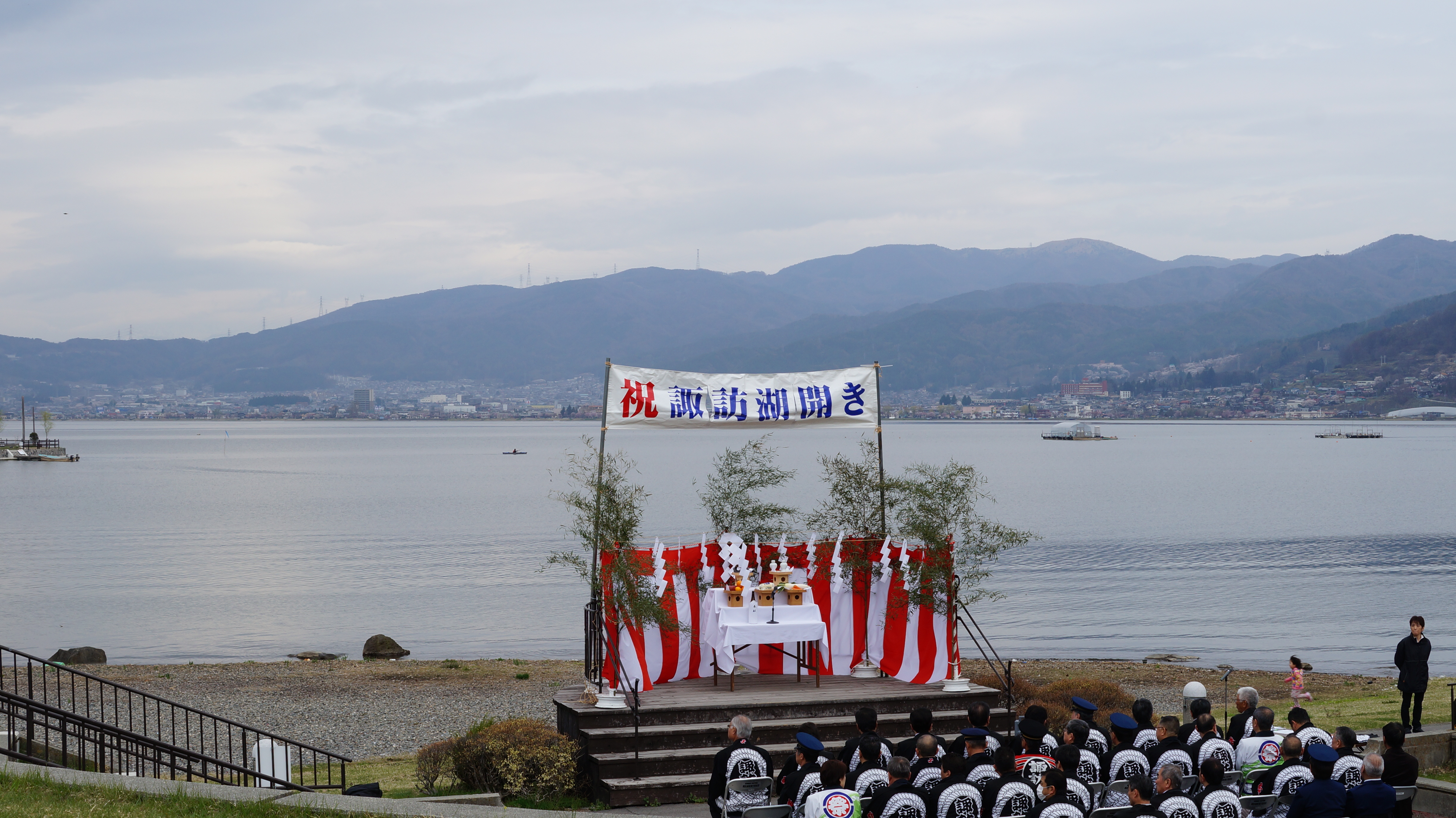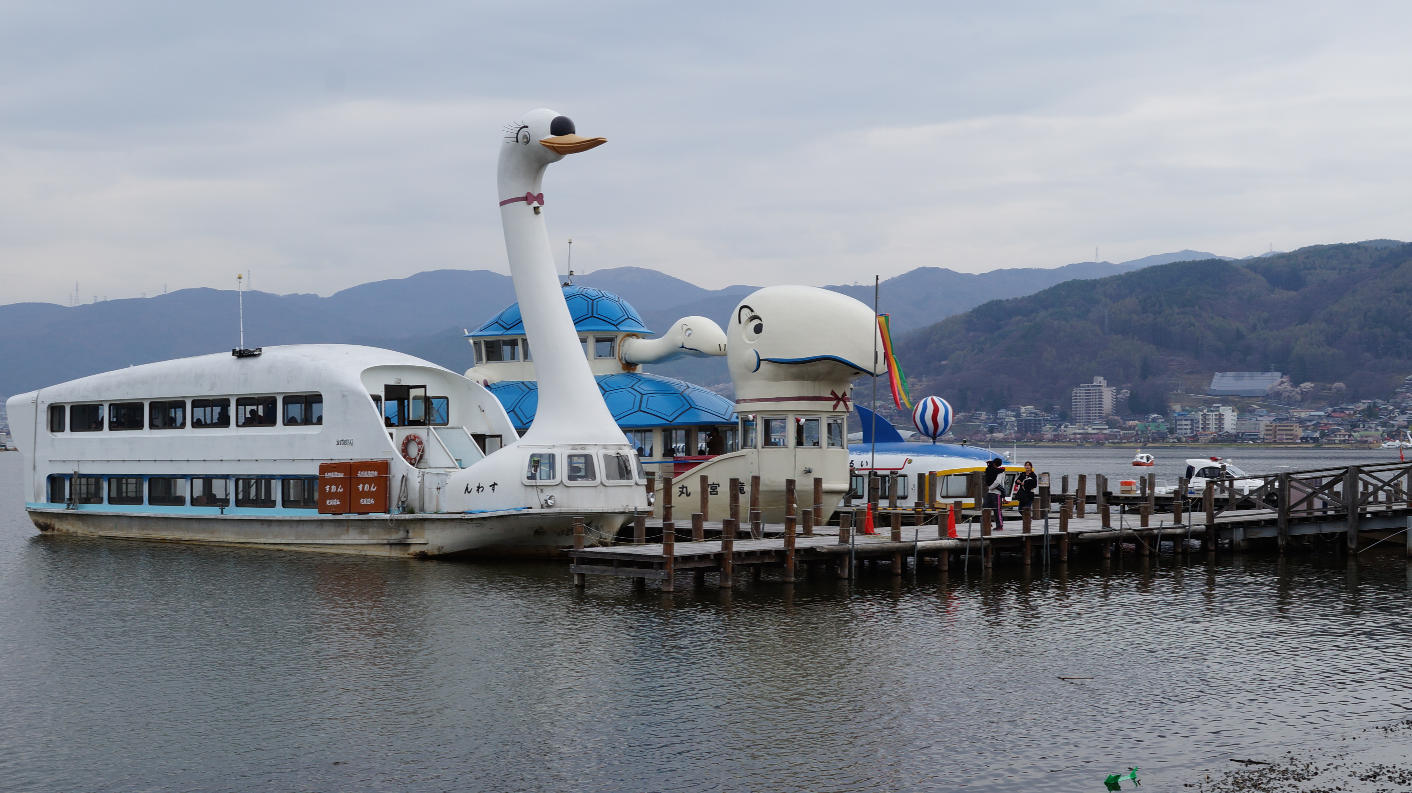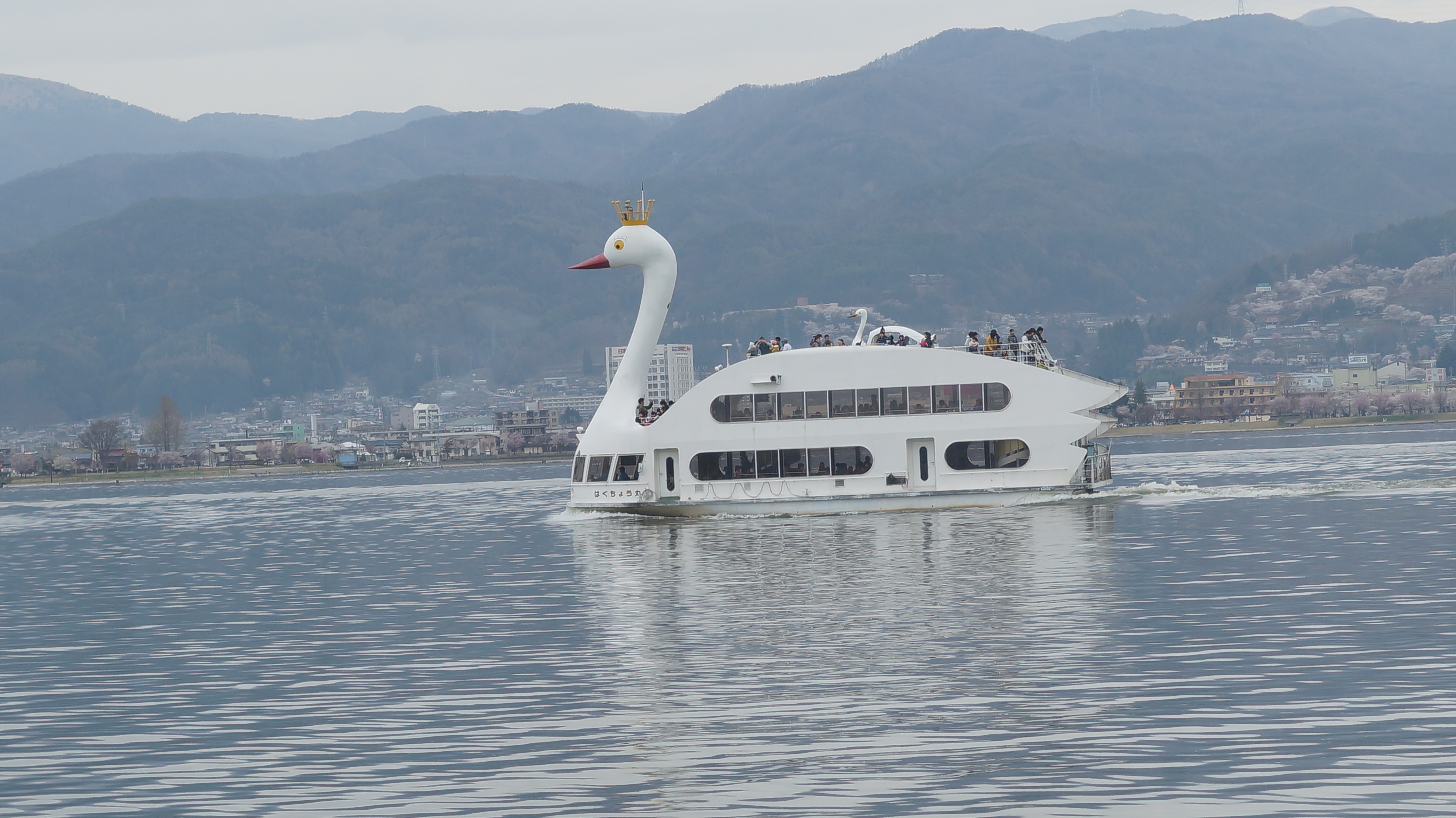 諏訪湖開き 投稿者: yukiame0329 投稿日: 2015年4月19日 諏訪湖の観光シーズンの幕開けとなる「諏訪湖開き」に行ってきました。 今年は遊覧船の無料乗船に応募してみました。 奥さんと二人で朝8時すぎから諏訪湖畔のイベント会場に並んで無料乗船券の配布を受け、10時出航の第1便に乗ることができました。 諏訪湖の遊覧船に乗るなんて10数年ぶりかなぁ。 雨がポツポツとくるあいにくの天気でしたが、けっこう楽しめました。 無料乗船券の配布には大勢の人が並んでいました。 無料乗船券もらいました。 乗るのはカメさんの「竜宮丸」です。 神事のあと、いよいよ出航。 船上から見る湖岸。 並走する「すわん」。 約30分かけて諏訪湖を一周してきました。 いいね 読み込み中…