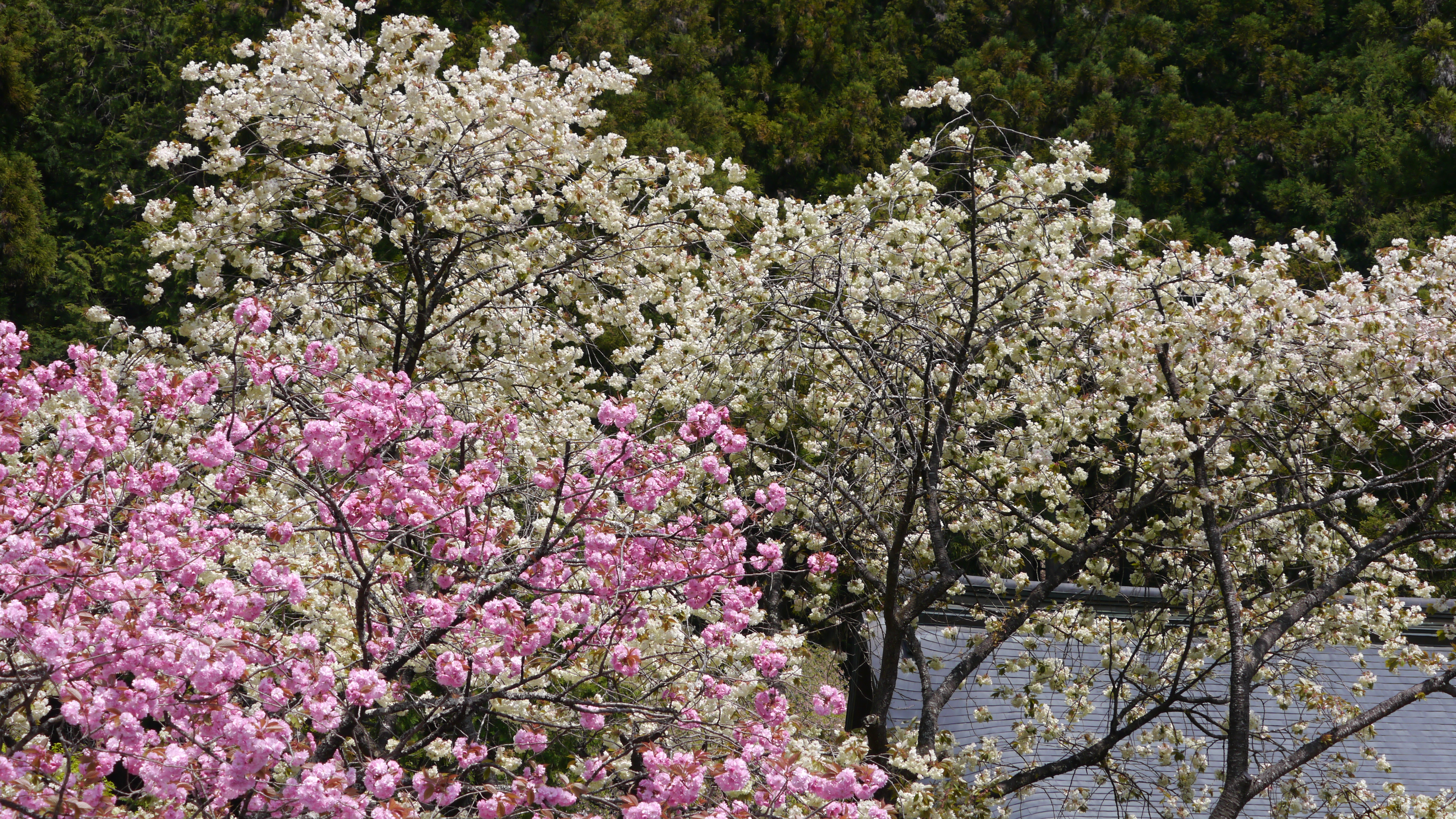 ここの桜は「ウコン桜」という種類で花の色が一般的なピンクではないんです。
