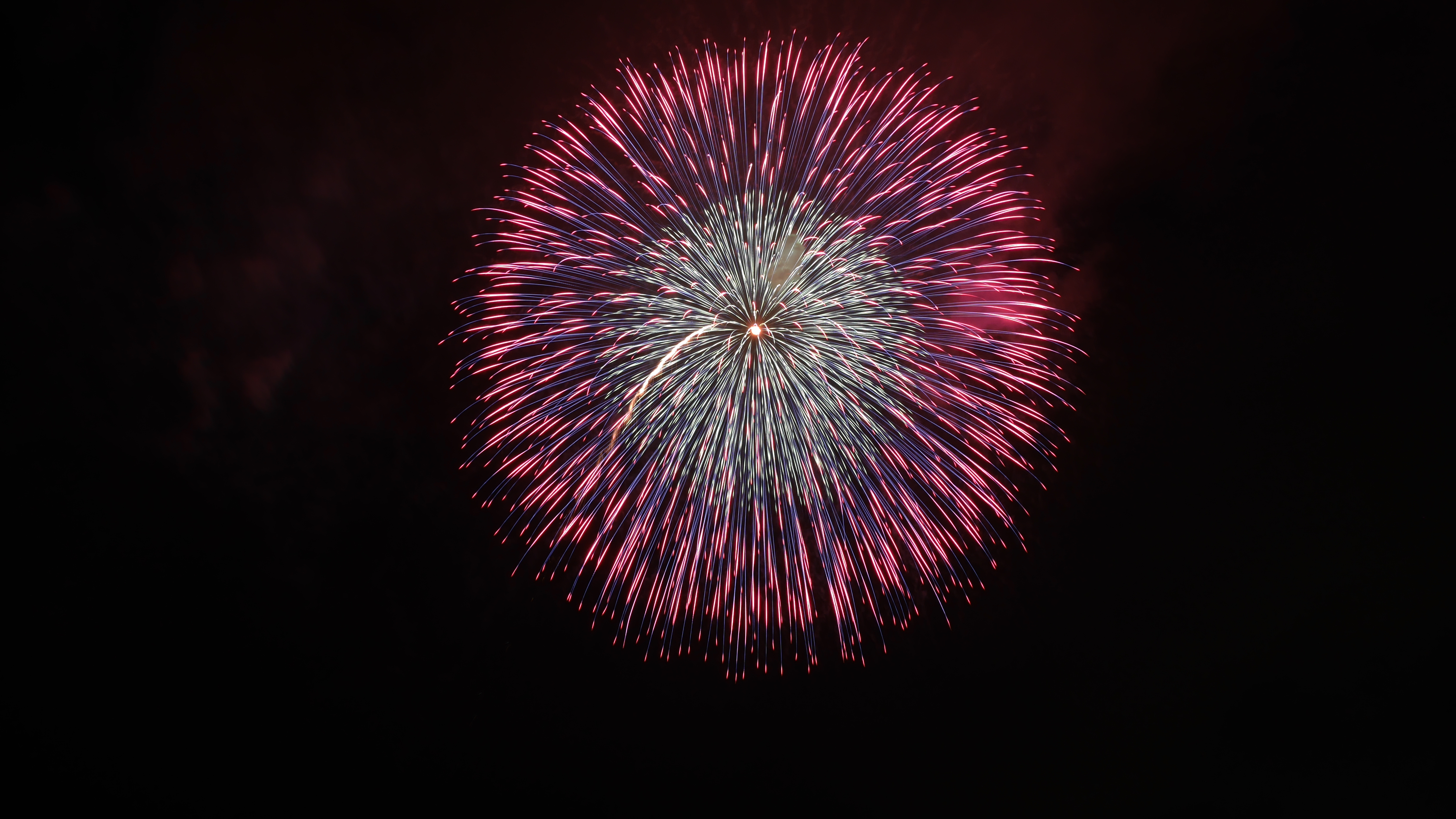 終盤のスターマインは動画で撮りました。最後の水上スターマインは圧巻です。