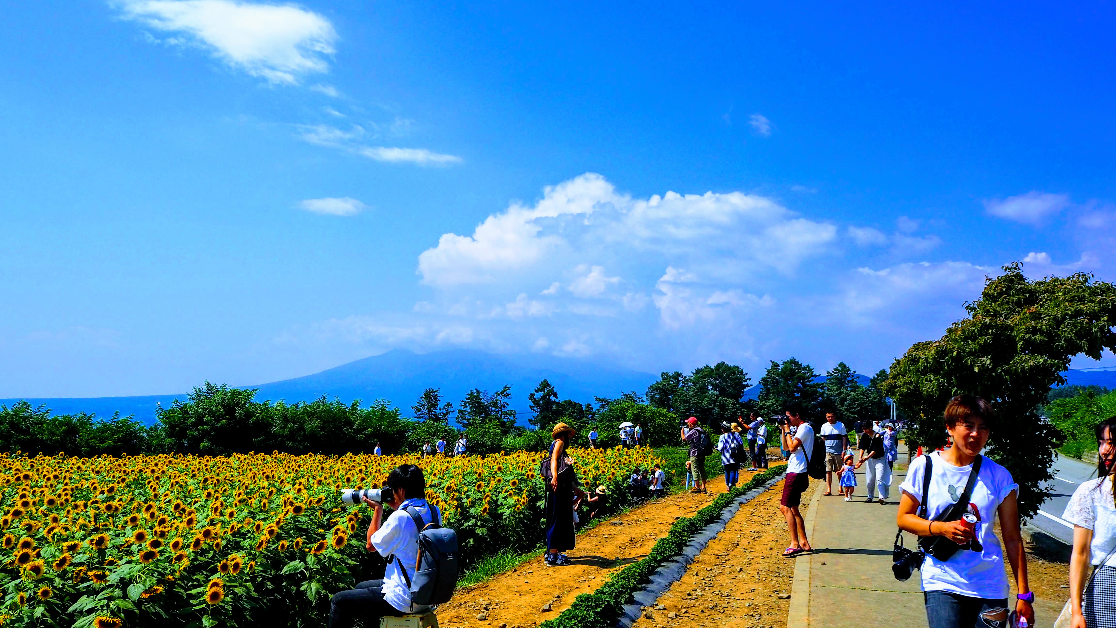 会場の駐車場は超満車状態で、多くのお客さんが散策していました。奥さんとしばらく歩いてひまわり畑をいくつか回りました。今年もいい景色をカメラに収めることができました。