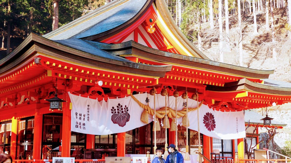 甲府の観光地の昇仙峡を抜けてさらに奥に上がったところにある金櫻神社は、黄金色の花が咲く「ウコン桜」で有名ですが、近年、水晶のパワースポットとしても有名になってきているようですね。今日もけっこうな山奥にもかかわらず参拝のお客さんが大勢来ていました。