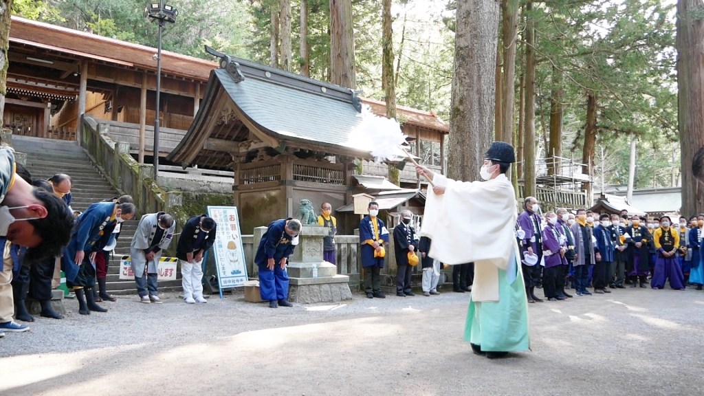 神事のあとの大総代からは『4月2日の「山出し」は1200年以上の御柱の歴史の中で初めて、人の手でなく、トレーラーでの運搬とした「苦渋の決断」となりましたが、「里曳き」は何としても氏子の手によって行いたい』との話がありました。