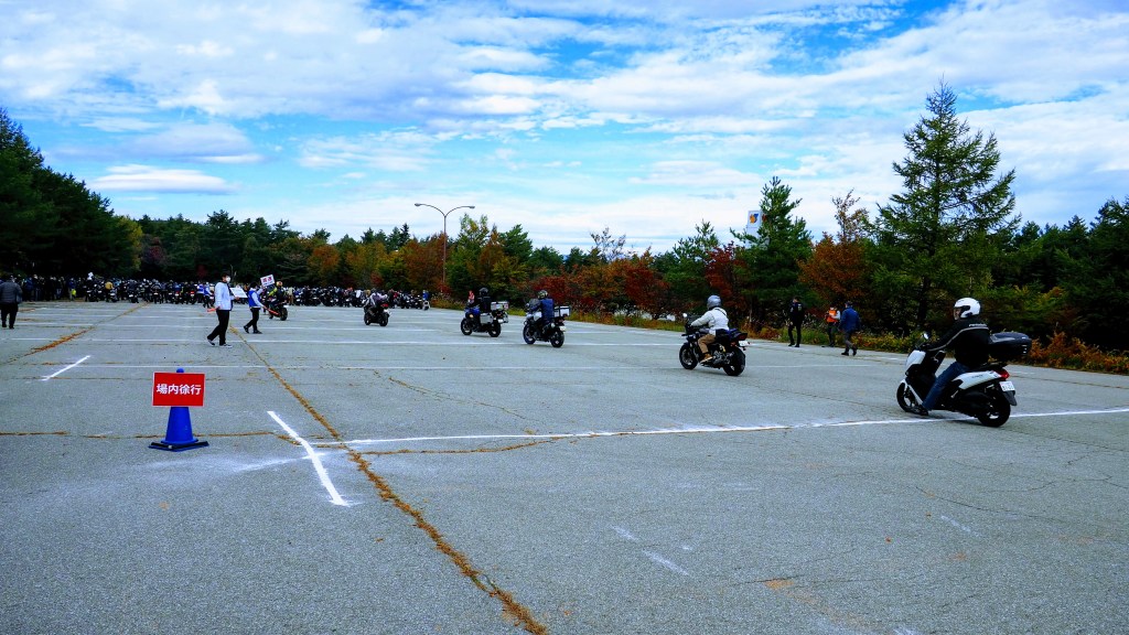 会場の「ふじてんリゾート」までは諏訪から高速を使って約2時間の距離です。会場駐車場オープンの8:00に間に合うように自宅を6:00に出発しました。出発時の諏訪市の気温は8℃、もう完全防寒仕様です。諏訪ICからすぐ高速に乗り、甲府南ICで下道へ。R358で精進湖を目指します。精進湖の先で富士パノラマラインに入り、「道の駅なるさわ」の先を右折、しばらく山の中を走ると「ふじてん」のカンバンと「YAMAHA」のノボリ旗が見えてきました。