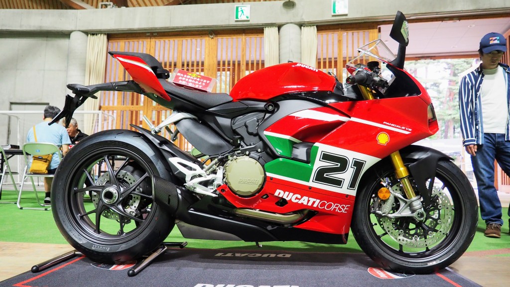 この輸入車ショーには、地元の大きなバイク屋さんが出展していて、ハーレーやドカ、ビーエムの試乗会が行われているんですよ。今日は朝からけっこうな雨降りだったので、試乗はできないなぁって思ってヘルメットを持参しませんでしたが、小雨の中でしっかり試乗会に参加している人を見てたら、「う~ん、ヘルメット持ってくればよかった…」とちょっと後悔してしまいました。なかなかこんな機会ないですからねぇ。
