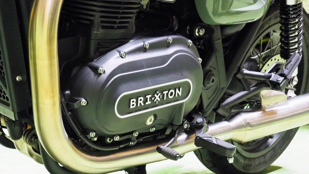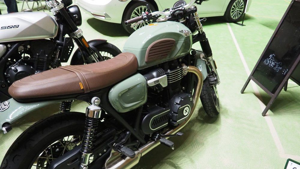 今回初めて見たバイクの中ですごく興味を持ったのはイタリア-Benelliベネリの「IMPERIALE400」っていう単気筒と、オーストリア-brixtonブリクストンの「Cromwell 1200」の2台でした。2台ともクラシックな外観の最新バイクです。なかでもオーストリアのbrixtonブリクストンってメーカーを知らなかったので、営業の人に「これ、どこのバイクですか?」っていろいろ質問してしまいました。いゃ~、カッコイイ!!!