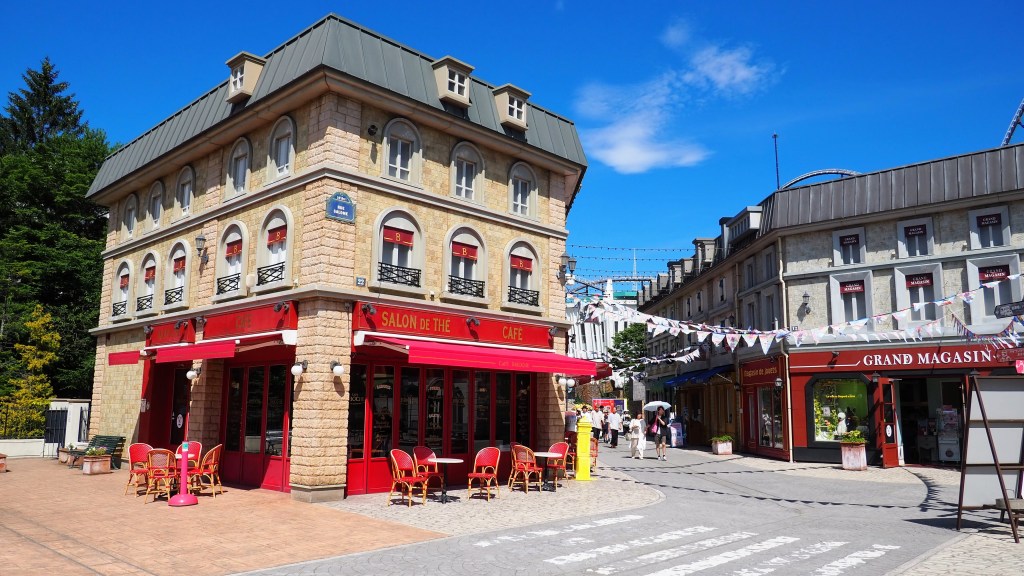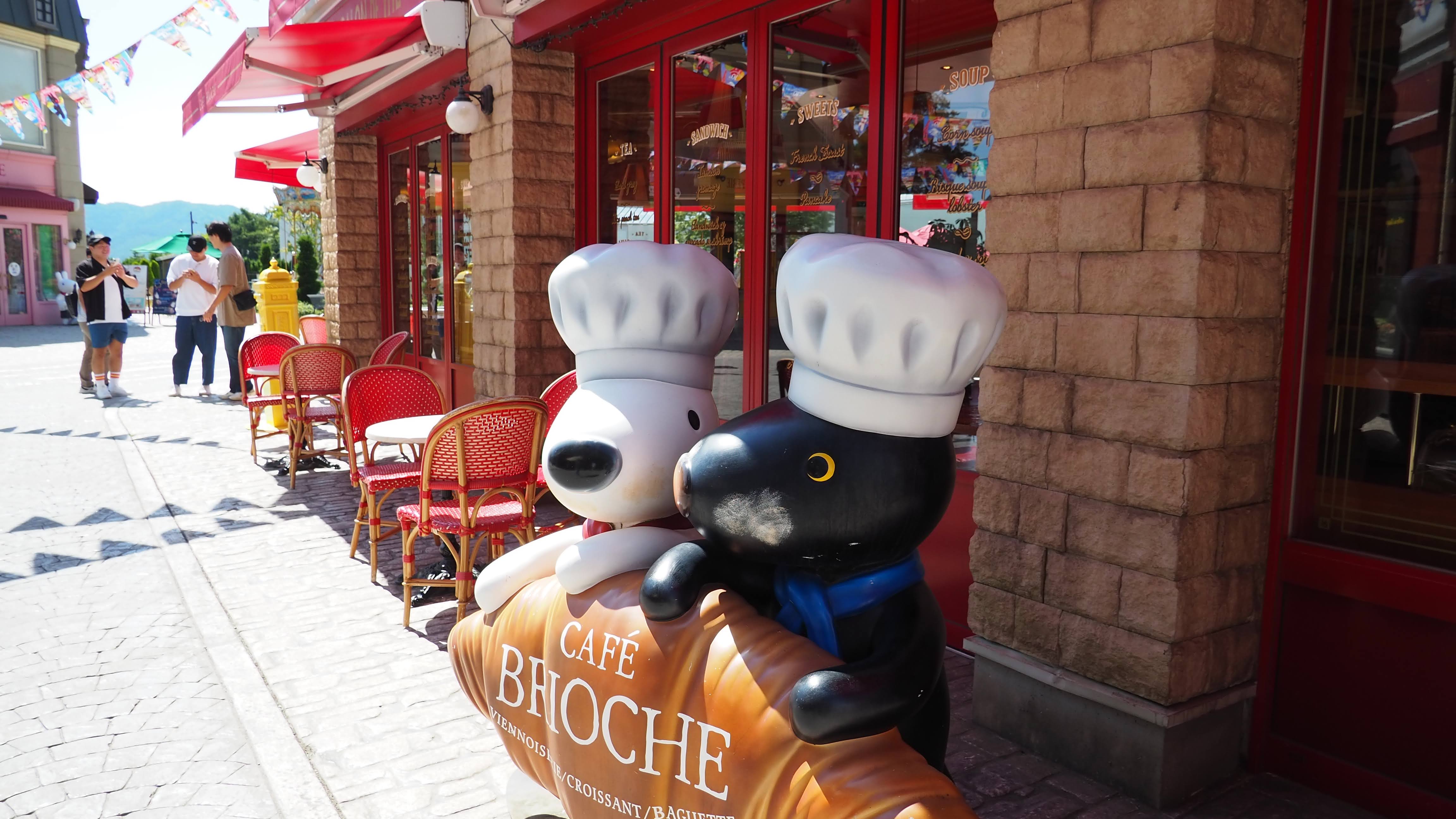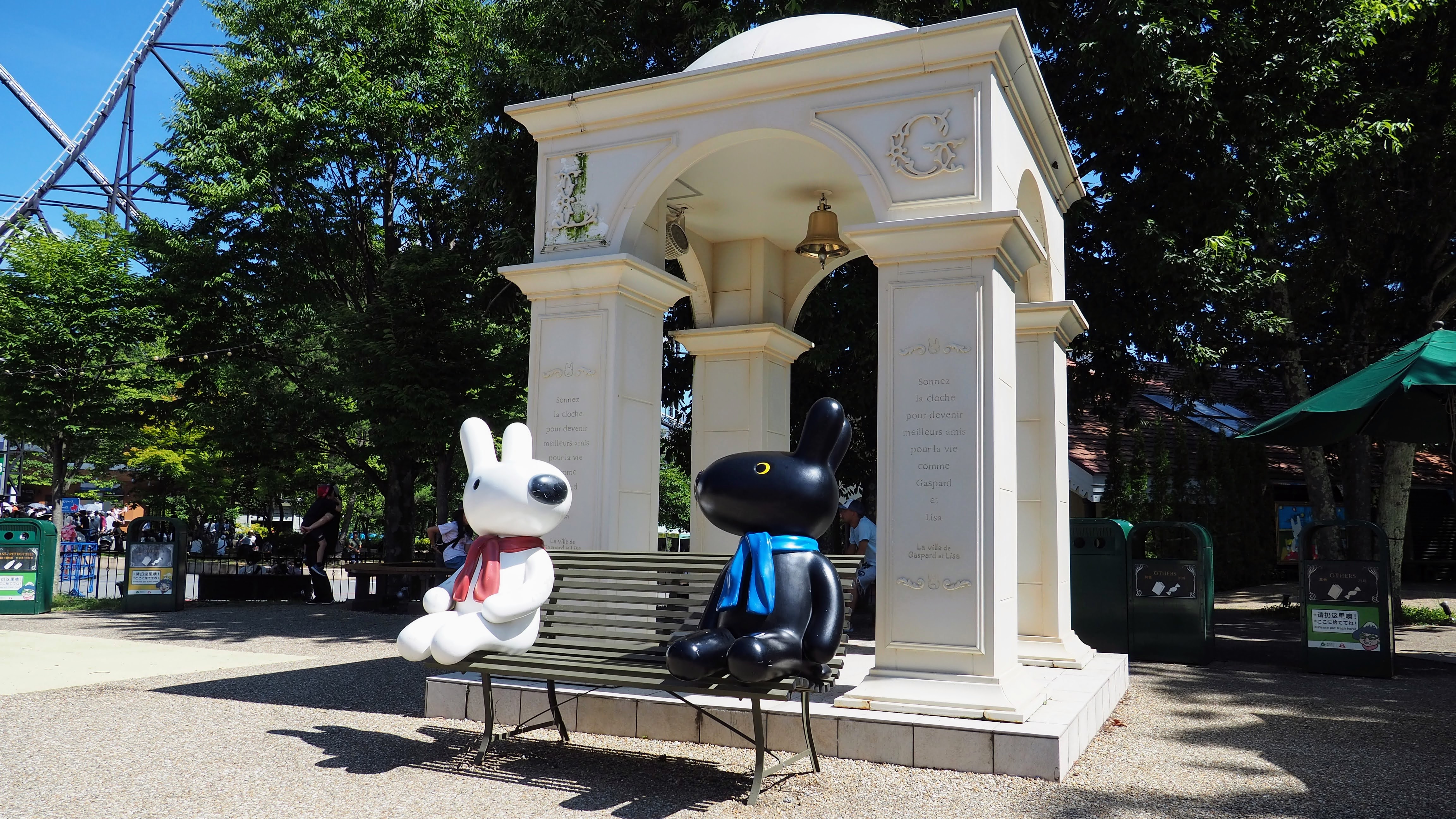 この「リサとガスパール タウン」は富士急ハイランドの中にあるものの、遊園地エリアに入らなければ入園料もかからない無料のエリアです。買い物だけの目的にはすごくいい場所ですね。すぐ近くを動いている絶叫マシンを眺めながら、のんびりとテーマパークの散策を楽しみました。