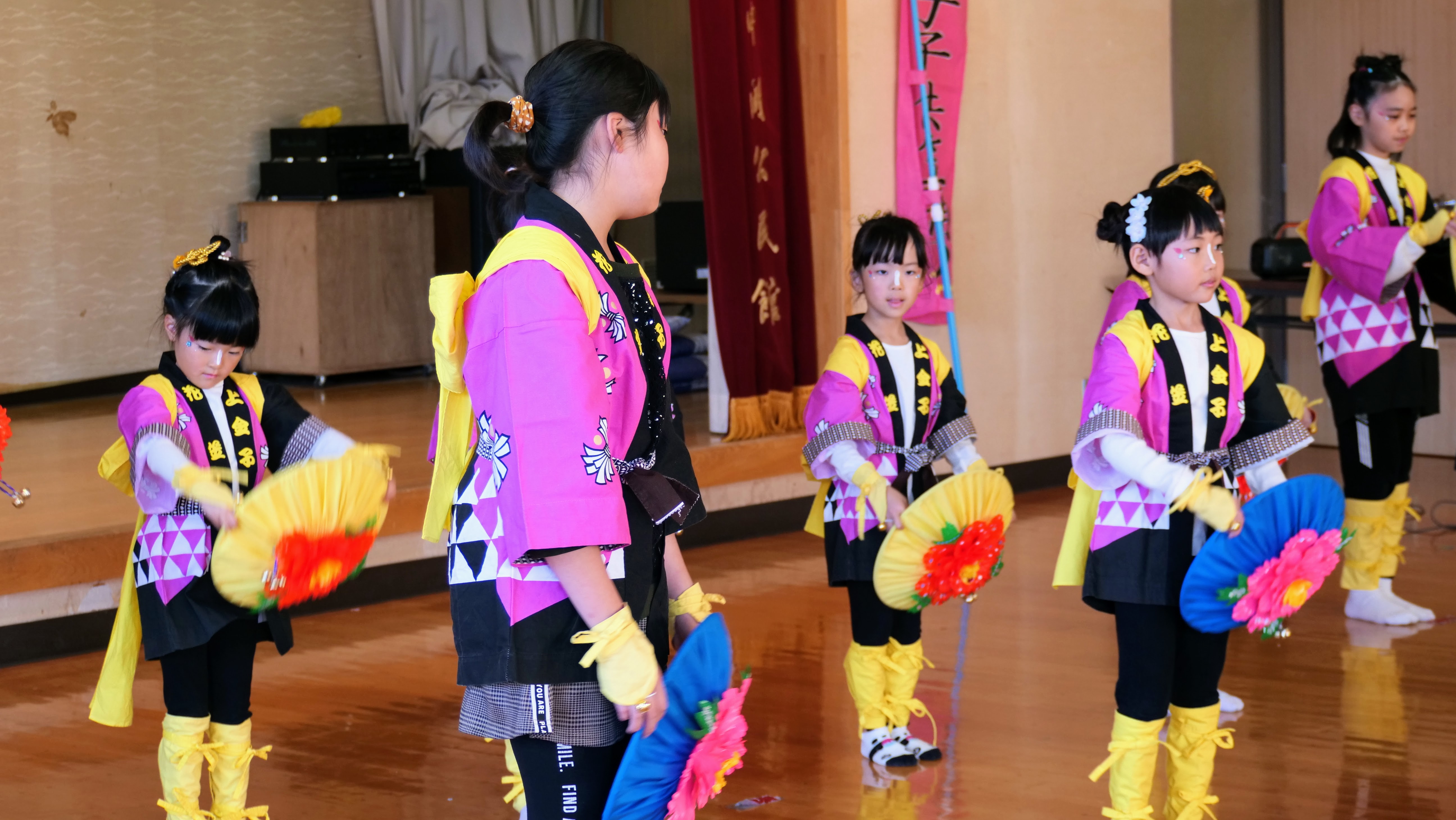 我が家の孫が参加している「上金子こども花笠」もこのステージで踊りを披露しました。今年の活動はこの発表で最後となります。今回、踊りメンバーの中で保育園や低学年の子たちを引っ張ってきた5年生、6年生の4人の子たちにとっては区切りのステージになるかもしれないとのことでしたので、意識してこの4人を追いかけて撮影しました。いい思い出になるといいですね。