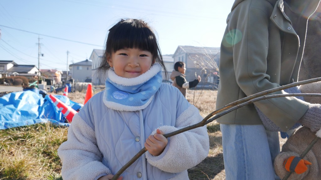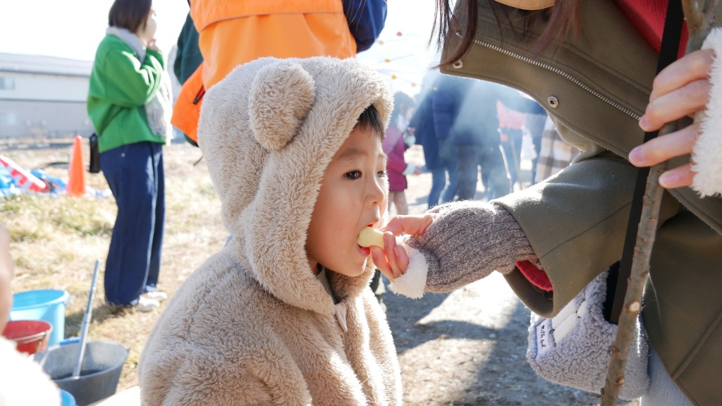 我が家の孫たちも参加しました。下の子は「どんど焼き」も「厄投げ」も初めての参加ですね。
