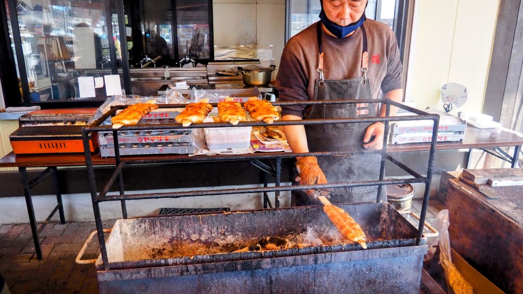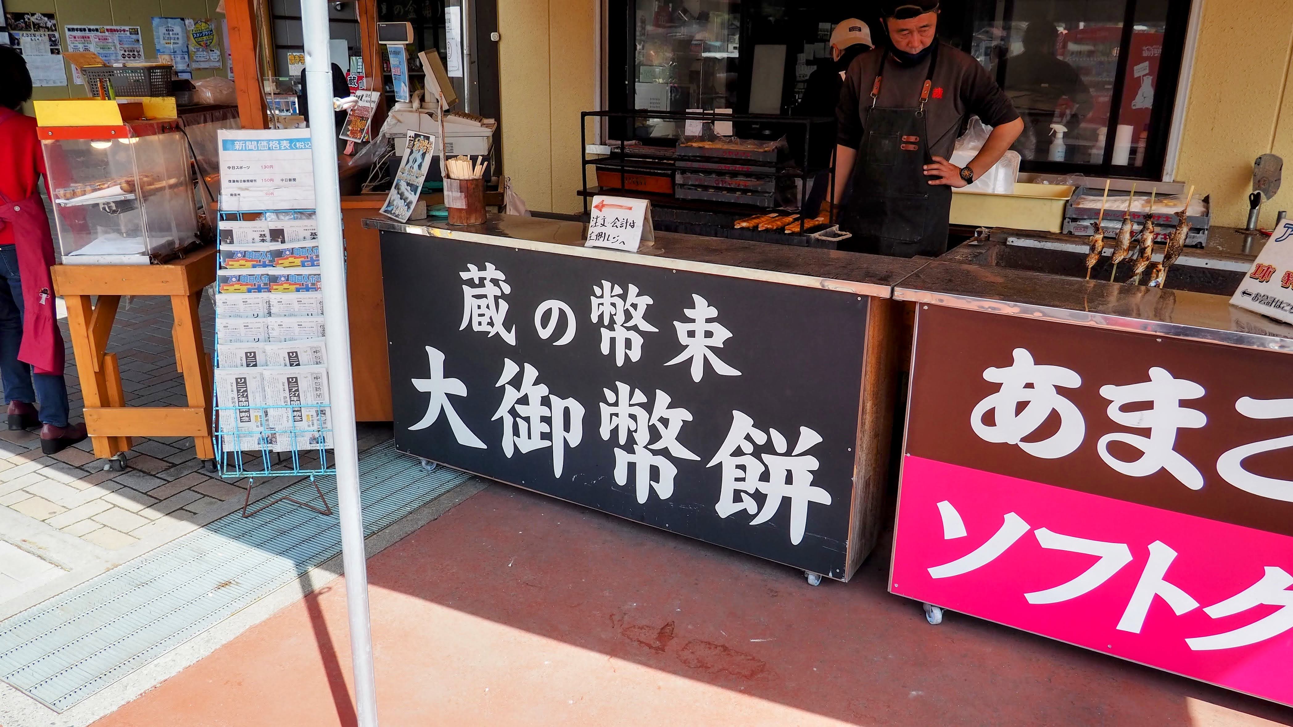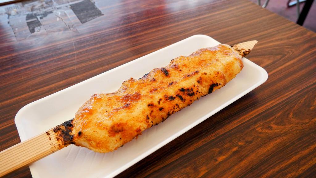この道の駅には「超巨大な御幣餅(ごへいもち)」を売っていて、これを食べるのが本日の目的です。この「超巨大な御幣餅(ごへいもち)」はテレビでたびたび紹介されていて、つい先日もローカル番組で取り上げられていました。「御幣餅(ごへいもち)」自体は諏訪でも普通に売っていますが、この大きさはぜひ見てみたいと思っていました。