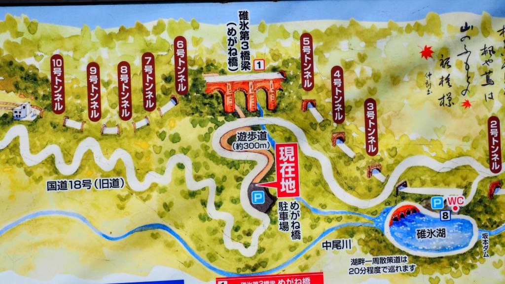 ルートは前回とまったく同じ。朝8:00に出発。諏訪から白樺湖を超えて佐久へ。中部横断自動車道の佐久南ICで高速に乗り、佐久小諸JCTで上信越道上りへ。松井田妙義ICで下りてR18へ入りました。R18の旧道を碓氷峠へ向かうと、途中に本日の目的地「碓氷第三橋梁(めがね橋)」が現れます。諏訪からちょうど2時間、10:00に到着です。