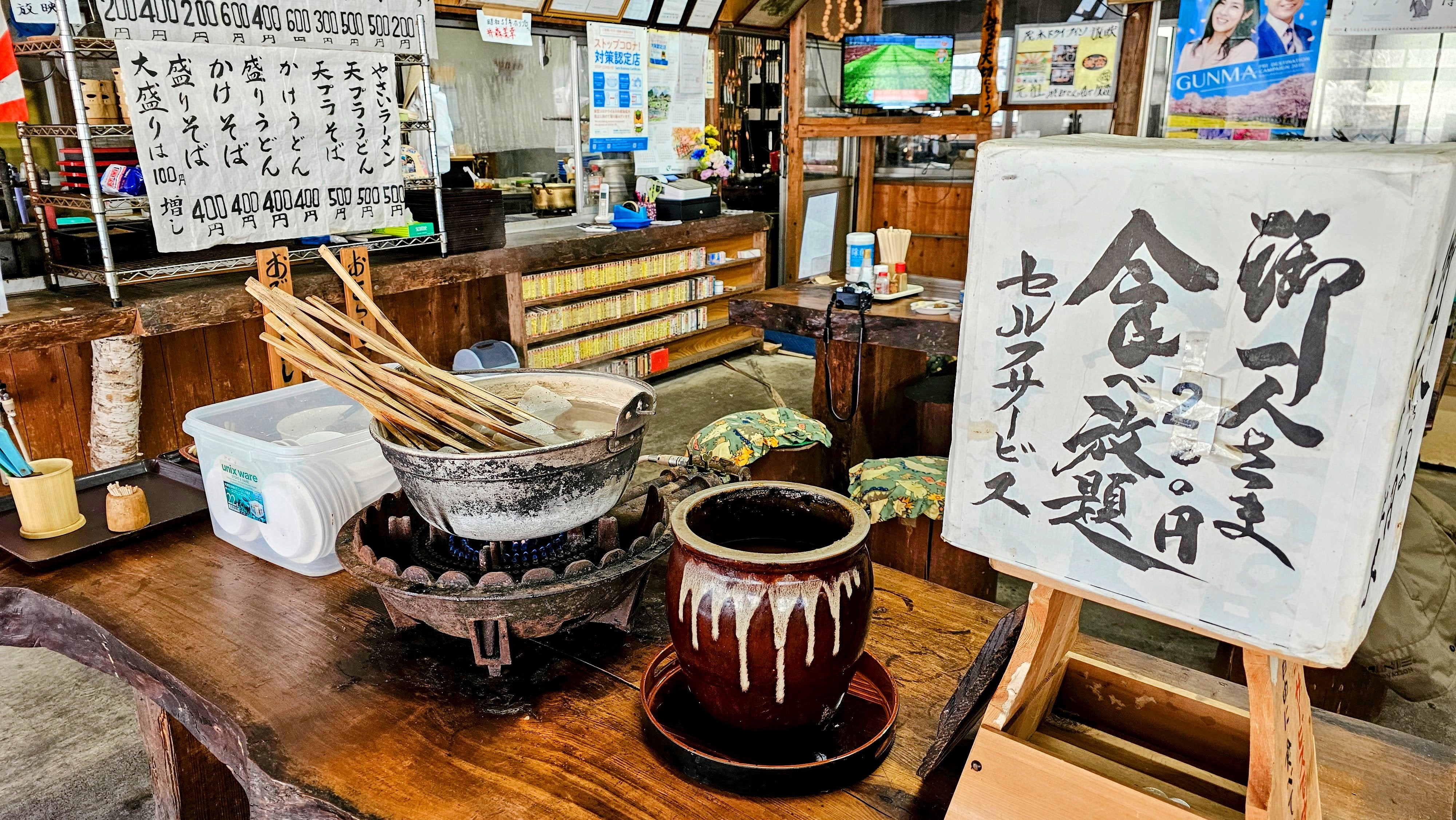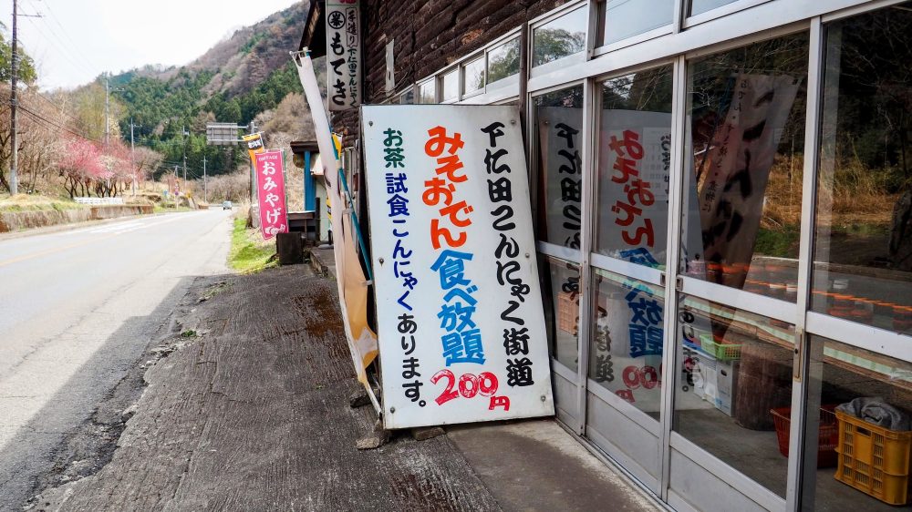 「めがね橋」のあとは、一気にR18旧道のくねくね道を駆け上がり碓氷峠へ。軽井沢アウトレットを通り越して下仁田へ向かいます。群馬ツーリングでは必ず立ち寄る「茂木ドライブイン」で昼食としました。お客さんもまだ入っていなかったこともあり、一人でお店を切り盛りするおばちゃんとの話がはずみました。