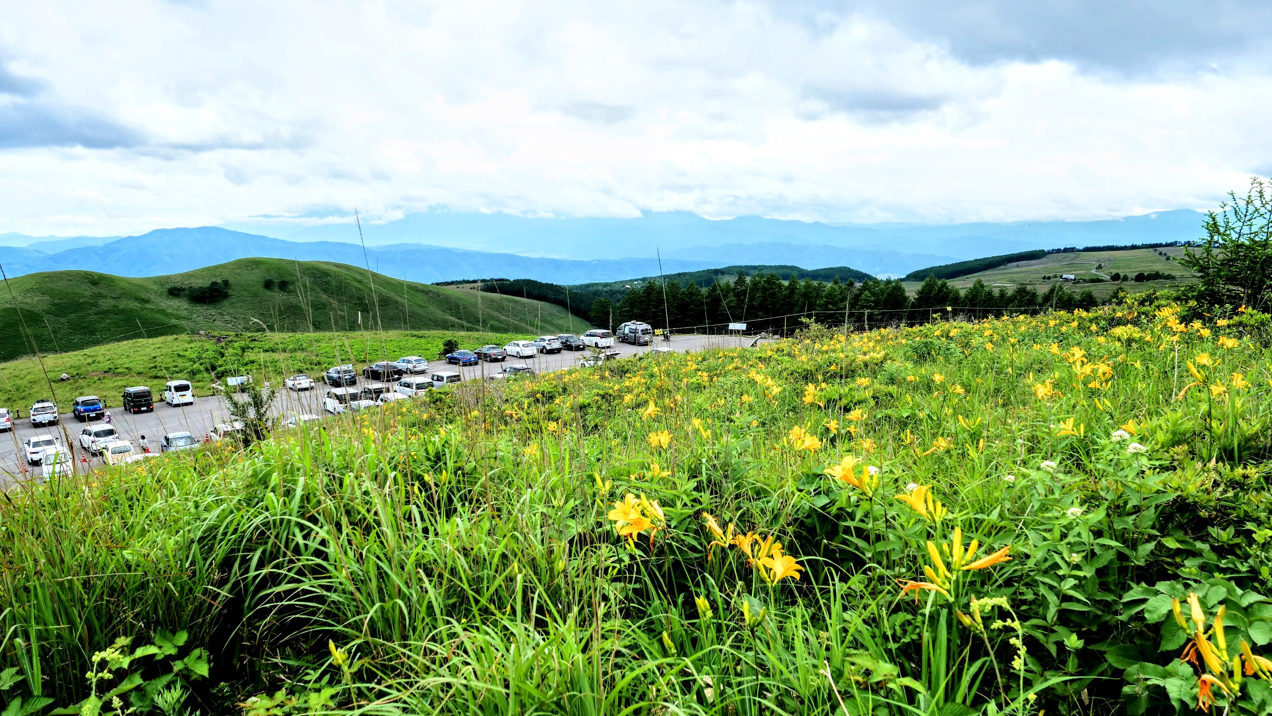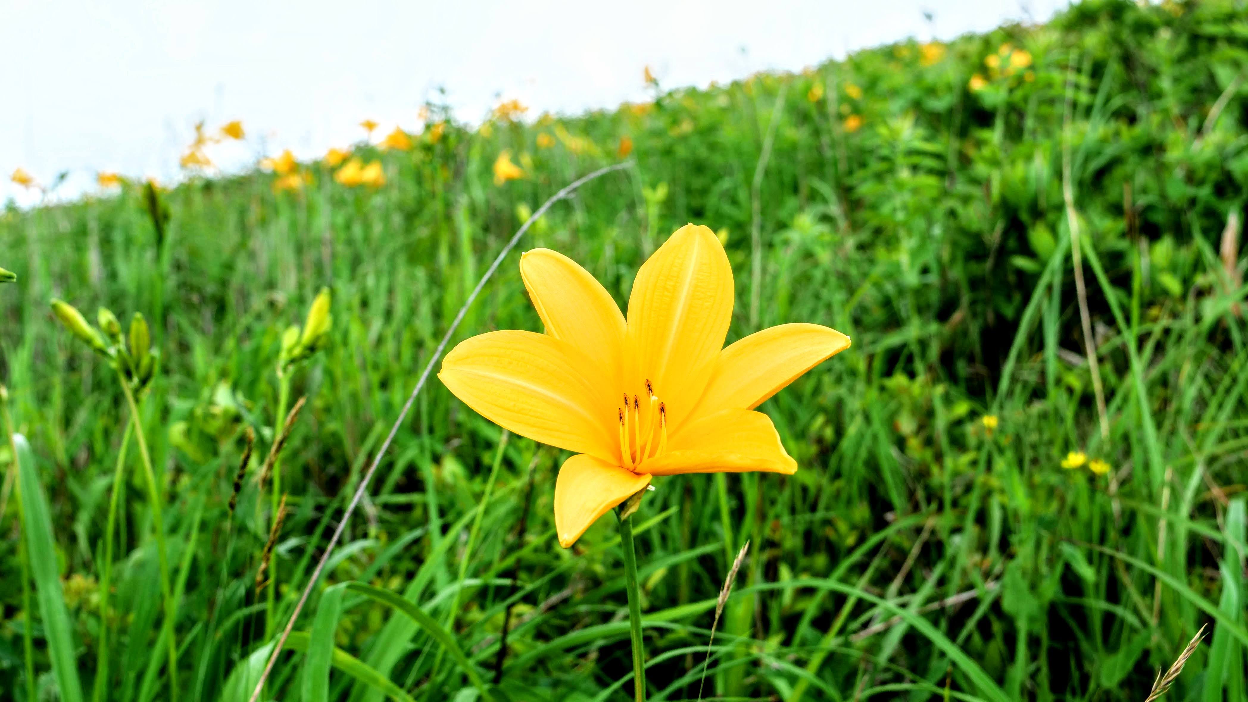 霧ヶ峰-富士見台のニッコウキスゲの群生が咲いているのは、下の駐車場からもよく見えました。狭い遊歩道を歩いて近くまで行くと、まだ満開というわけではなかったですね。7分咲きといったところでしょうか。梅雨時とあって雲が多く、「青空に映えるニッコウキスゲ」といった写真は撮れませんでしたが、きれいに咲く様子はしっかりとカメラに収めてきました。