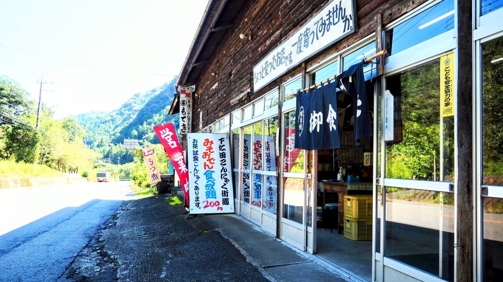 国道254号線を西へ走り、お昼ちょっと前に定番の「茂木ドライブイン」に到着。ここで昼食をとりました。毎度食べていますが、ここのコンニャクみそおでんはうまい!!!。