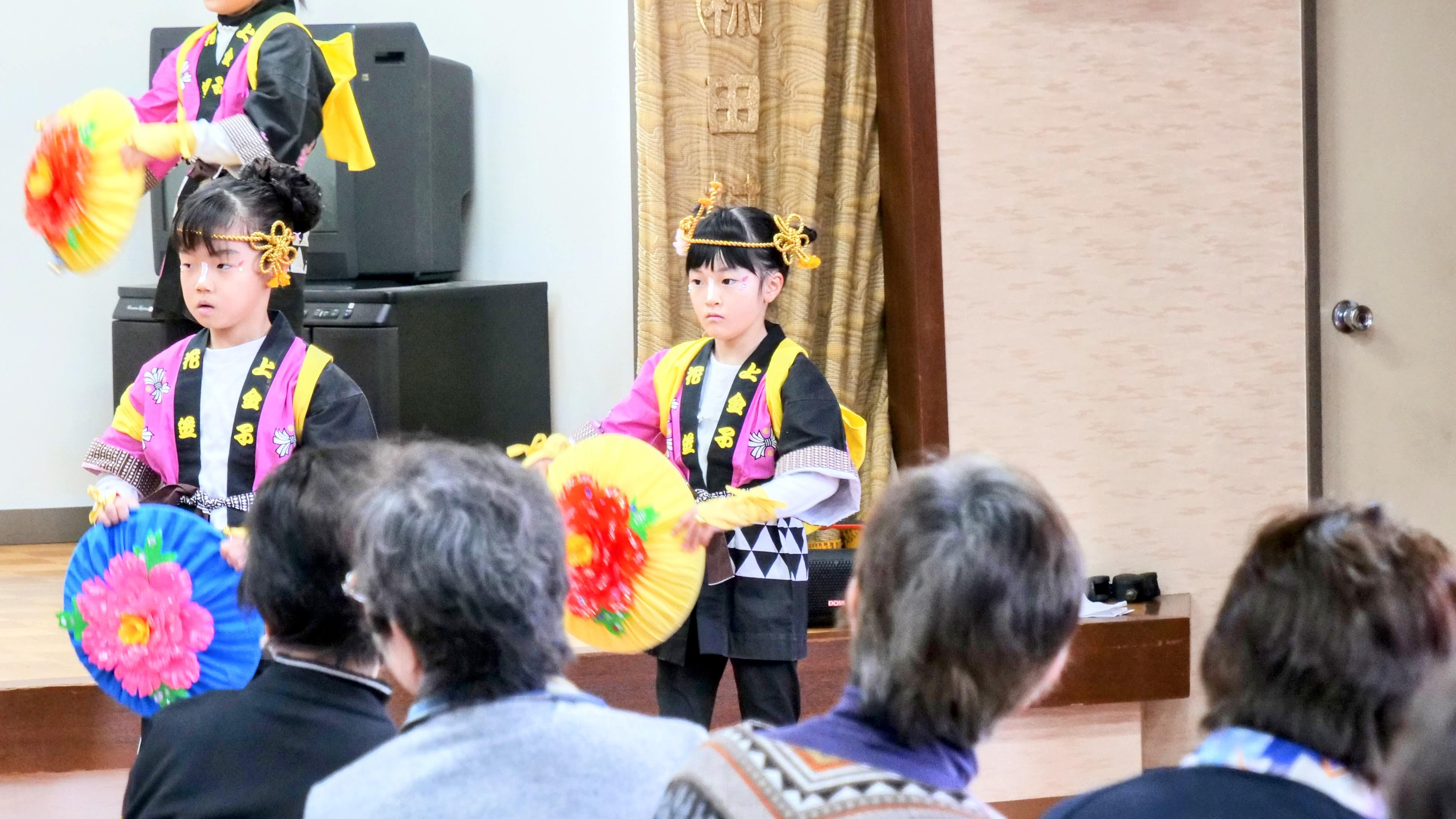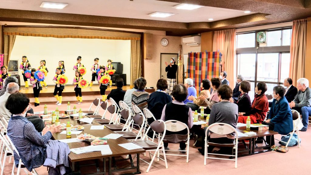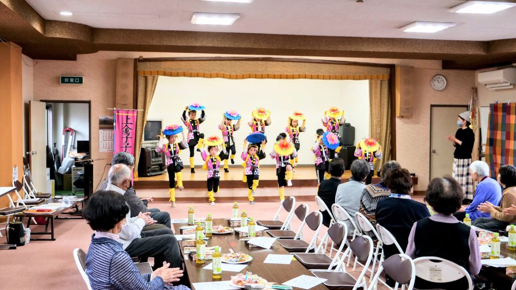 上金子公民館-こども花笠披露 投稿者: yukiame0329 投稿日: 2025年3月29日2025年4月3日 3月の最終土曜日、上金子公民館にて上金子老人クラブの総会が開催され、閉会後に「上金子こども花笠」とフラダンスサークル「ラウレアフラスタジオ」の皆さんのステージ発表が行われました。 こども花笠の子たちにとっては、今年初めてのステージとなります。いままで引っ張ってきた6年生の子たちが卒業で抜けて、少し寂しくなりましたが、今年のメンバーたち(我が家の孫も含めて…)、しっかり頑張って踊ってくれました。地区の老人クラブの方々から大きな拍手をいただきました。 共有:シェア Facebook で共有 (新しいウィンドウで開きます) Facebook X で共有 (新しいウィンドウで開きます) X Share on Pocket (新しいウィンドウで開きます) Pocket 印刷 (新しいウィンドウで開きます) 印刷 いいね 読み込み中…