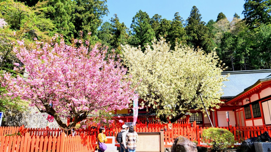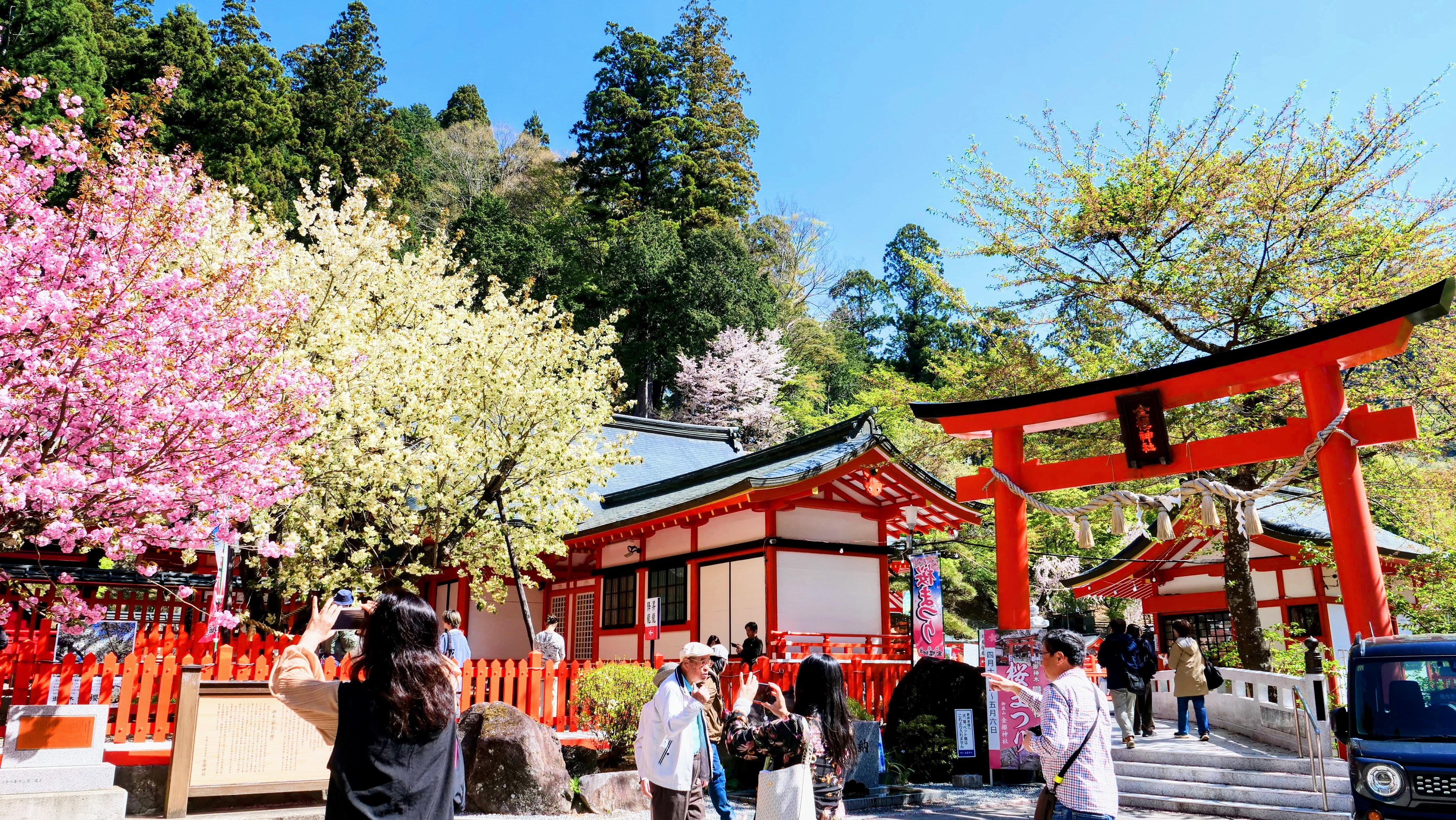 この金櫻神社のウコン桜(鬱金桜)を見るために毎年やってきています。今日もいい天気に恵まれました。